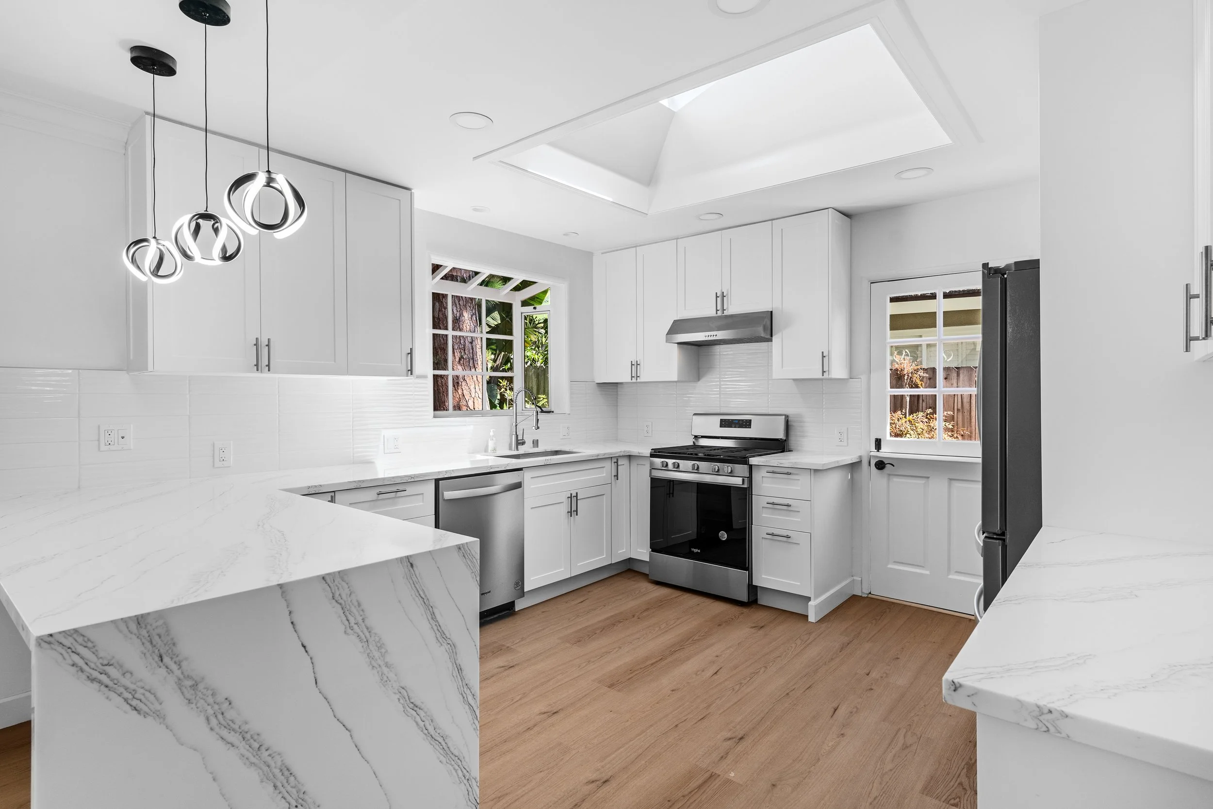 The brand-new kitchen, equipped with stainless steel appliances, is bright and airy, with a bay window and several sliding glass doors that showcase views of the lush backyard. Step outside to a charming garden with red brick hardscape and a wood trellis, adding a nostalgic vibe. The spacious sports court is perfect for pickleball and basketball gatherings, and the oversized jacuzzi invites you to relax after exercising.